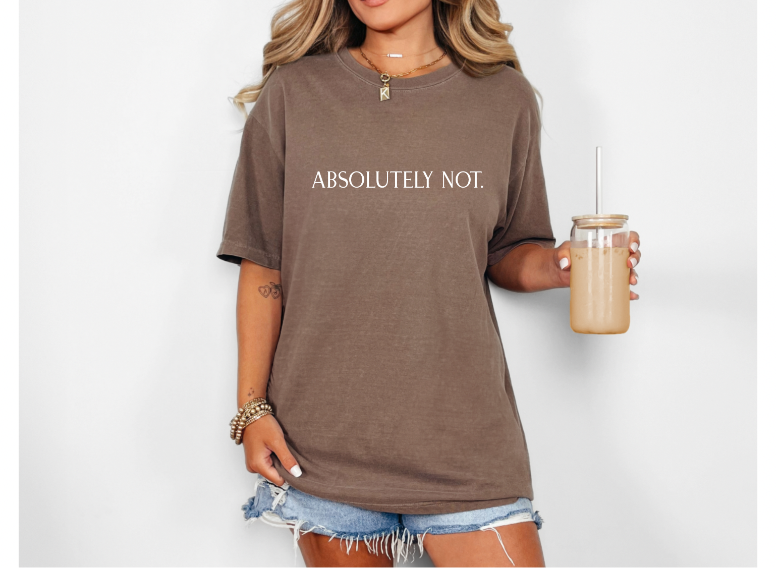 multiple folkChoose your attitude with Absolutely Not! Available in multiple color options, this shirt features the empowering words "absolutely not" written in bold white font. Let this shirt speak for you and confidently say no to anything that doesn't align with your values and beliefs.